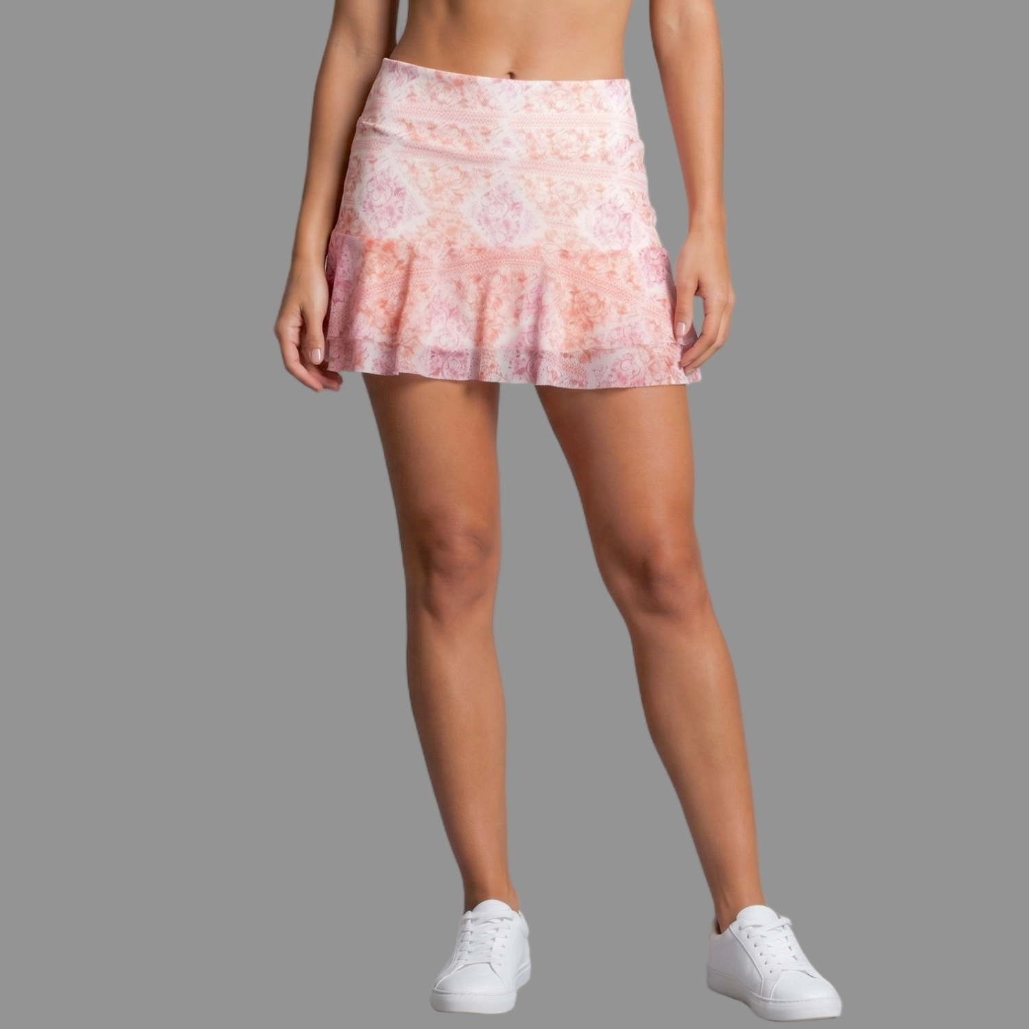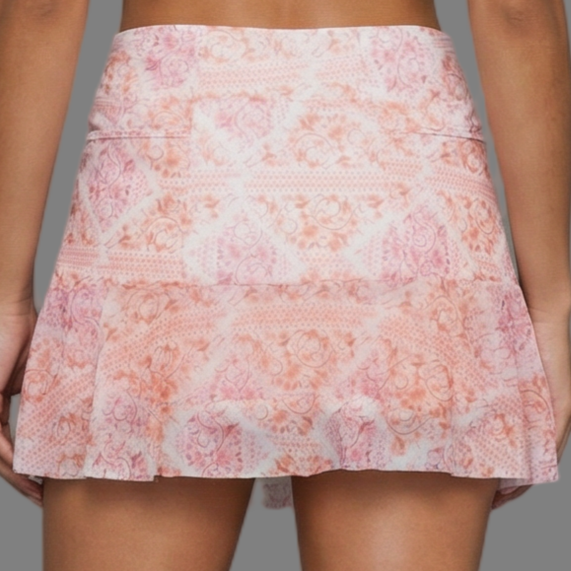 This two-tiered skort is designed to move with ease—featuring airy mesh flounces that create a light, flowing silhouette with every step. The raw finished edges give it an organic, lived-in feel, balancing softness with subtle structure.